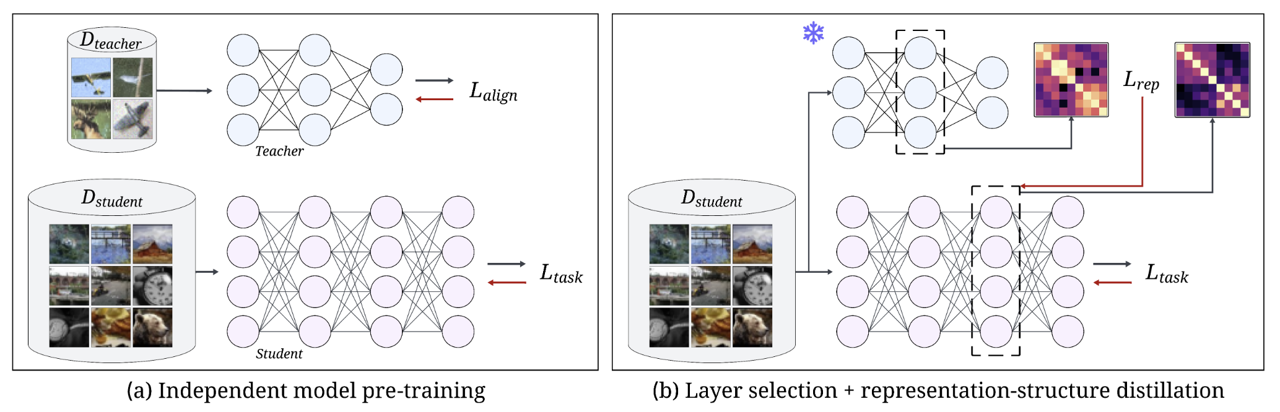 Human-aligned deep learning models exhibit behaviors consistent with human values, such as robustness, fairness, and honesty. Transferring these behavioral properties to models trained on different tasks or data distributions remains challenging: aligned behavior is easily forgotten during fine-tuning, and collecting task-specific data that preserves this behavior can be prohibitively costly. We introduce BIRD (Behavior Induction via Representation-structure Distillation), a flexible framework for transferring aligned behavior by matching the internal representation structure of a student model to that of a teacher. Applied to outof-distribution robustness in image classification, BIRD outperforms fine-tuning, transfer learning, and continual learning methods, improving robust accuracy by up to 16% over the next strongest baseline. It remains effective even when the teacher is trained on a much simpler dataset and is 25× smaller than the student. In a large-scale study of over 400 teacher-student pairs, we show that three interpretable and computable properties of the teacher’s representations (i.e., task relevance, behavioral relevance, and complementary knowledge) explain up to 85% of the variance in transfer success. These insights offer practical guidance for teacher selection and design. BIRD turns small, well-aligned models into scalable alignment seeds, removing a key bottleneck in deploying safe AI systems in the wild.